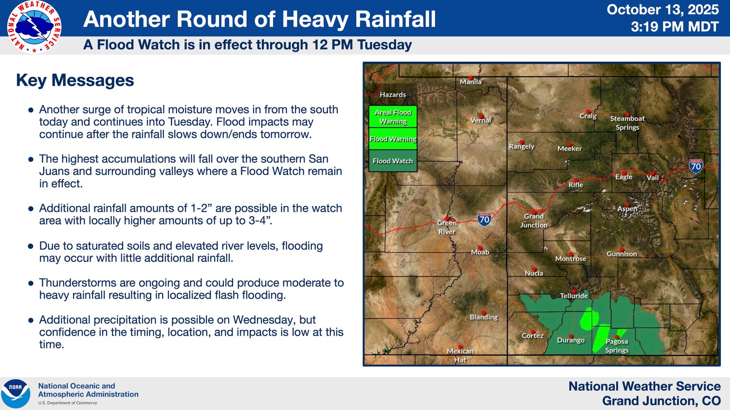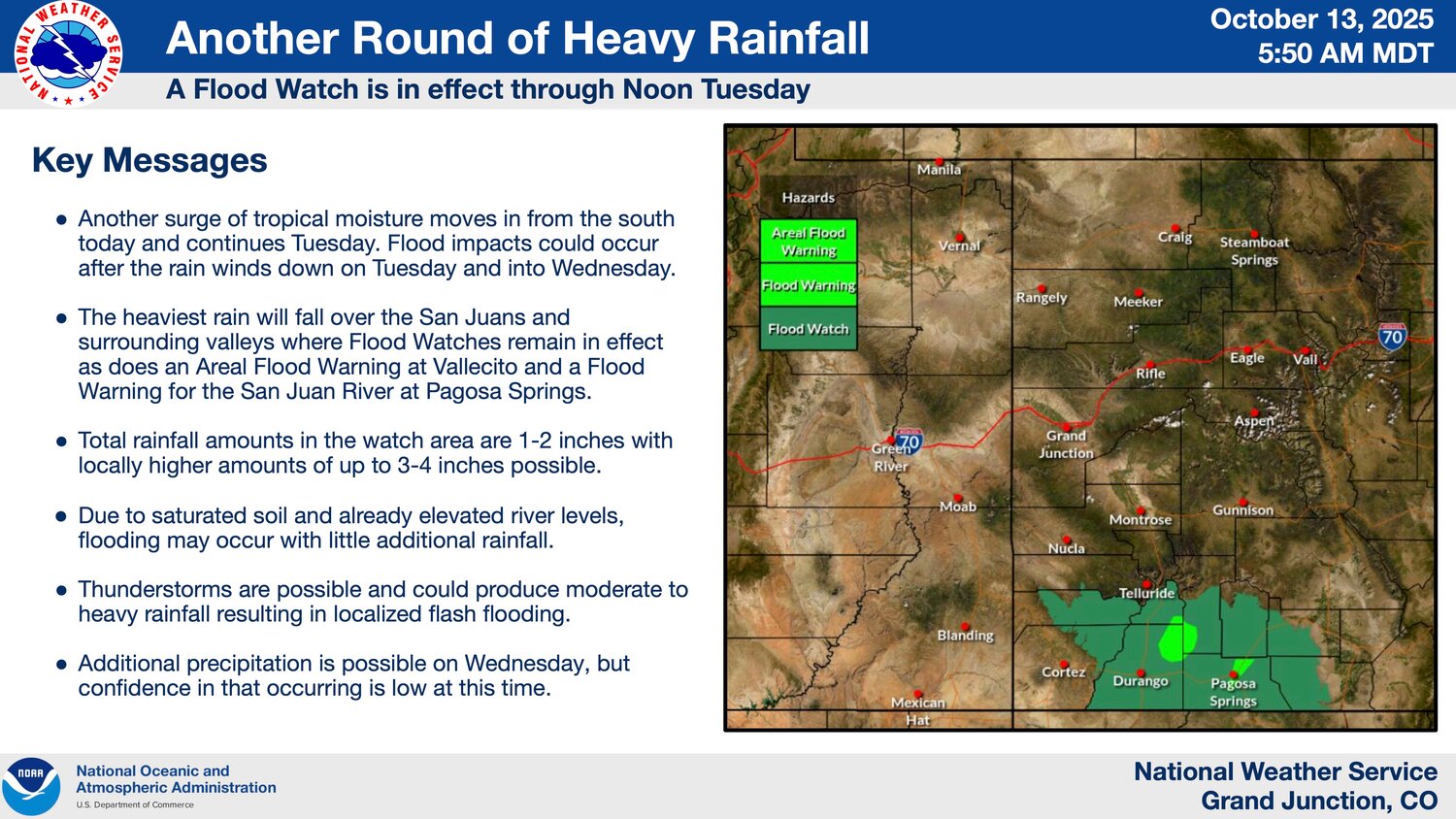 The Archuleta County Sheriff's Office (ACSO) Division of Emergency Management has issued a flood warning for Archuleta County. "The rivers are rising and could affect …